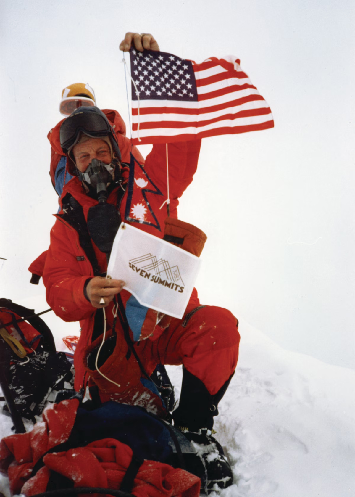 Richard Bass was an American mountaineer and businessman known for being the first person to climb all of the peaks over 14,000 feet in the contiguous United States, which he completed in 1964. He gained further fame in 1985 when he became the first person to climb the highest peak on each continent, known as the Seven Summits. His ascent of Mount Vinson in Antarctica completed this challenge. Bass was also an accomplished author, writing about his climbing experiences and the challenges of mountaineering. In addition to his climbing achievements, he was involved in various business ventures and was known for his charismatic personality and passion for the outdoors. He passed away in 2015, leaving a lasting legacy in the climbing community.